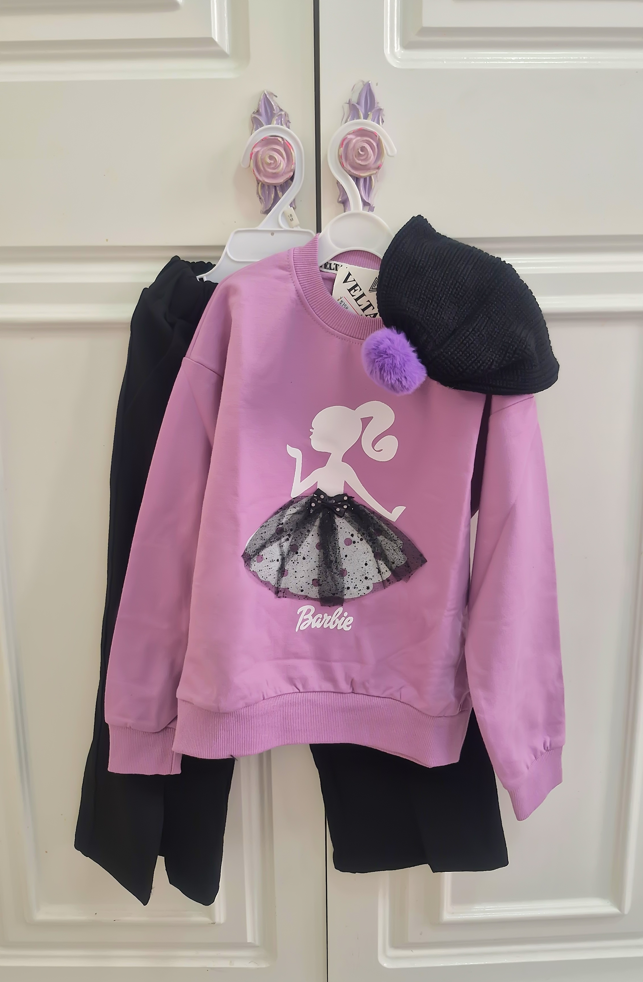 سه تکه شامل شلوار بلوز وکلاه دورس ونخ مناسب همه فصل